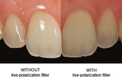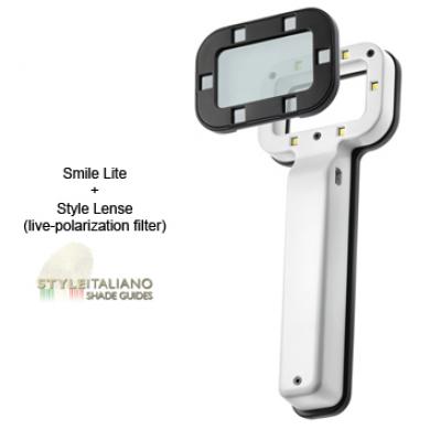С учетом инициатив Л.Ванини (1996), С.Папазоглу (2006), совместно с нашим партнером Styleitaliano (группа активных исследователей и медиков -www.styleitaliano.org) и члена Общества « Дизайн полости рта » Георга Иоанну (Афины, Греция) мы смогли завершить разработку специального поляризационного фильтра, который практически до нуля снижает световые помехи и может быть просто адаптирован на Smile Lite. Этот «магический» фильтр устраняет световую рефлексию (зеркальную и рассеянную) и позволяет пользователю рассматривать зубы по-новому : легче распознавать цвет, лучше понимать глубину и транспарентность и выявлять мельчайшие детали и характеристики.