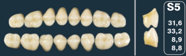 • Трехслойные акриловые зубы Primodent, фронт, верх
