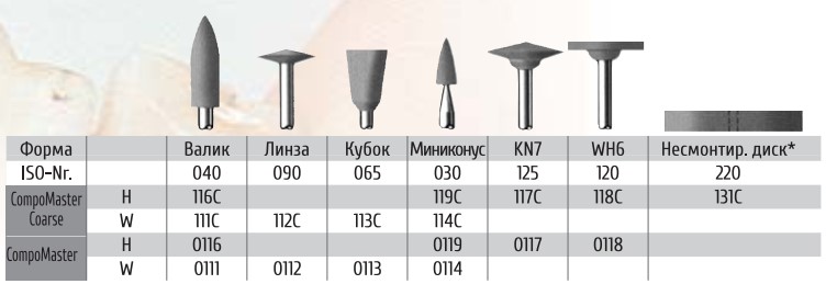 - Полиры CompoMaster Coarse разработаны для одноэтапного контурирования и предварительной полировки композитных поверхностей