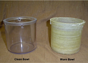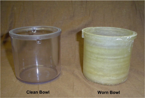 Вы смешиваете гранулированный материал и когда вы смешиваете внутренняя сторона емкости изнашивается. Это происходит медленно и со временем. Поскольку внутренняя поверхность емкости движется по направлению от угла лопатки, материал у стенки емкости фактически смешивается с меньшей силой чем материал в зоне лопатки. Эта сила создает энергию трения в смеси и это позволяет управлять реакцией. Паковочная масса на внутренней стенке не получает столько же энергии и, следовательно, не расширяется в той же степени, что и материал в зоне лопатки (это может быть частью проблемы с мостиком, который не припасовывается). Это происходит в течение длительного времени и вы действительно не замечаете изменения или вы, возможно, начинаете замечать, что работы получаются более сжатыми и вы не можете получать их большего размера, даже используя
