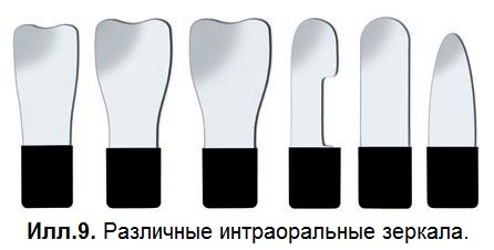 В зависимости от цели применения в дентальной фотографии при выборе интраоральных зеркал можно воспользоваться различными формами и качеством (илл.9).