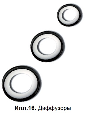 Диффузоры (илл.16) , которые крепятся перед системой освещения, способствуют дополнительному рассеиванию света. Этим на снимок подается более мягкий свет. Кроме того, уменьшается маленькая тень, которая исходит от самого зубного ряда. Диффузоры легко устанавливаются, не дороги, и должны быть обязательными при всех дентальных системах освещения.